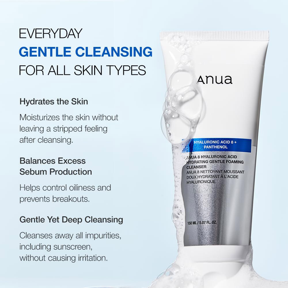 ANUA 8 Hyaluronic Acid Hydrating Gentle Foaming Cleanser (فوم شستشوی ملایم و آبرسان با ۸ نوع هیالورنیک اسید آنوآ)