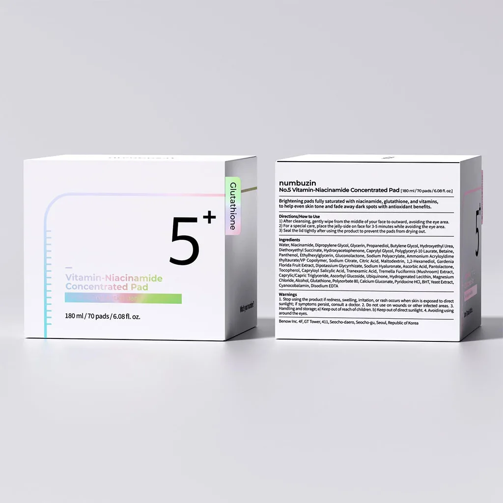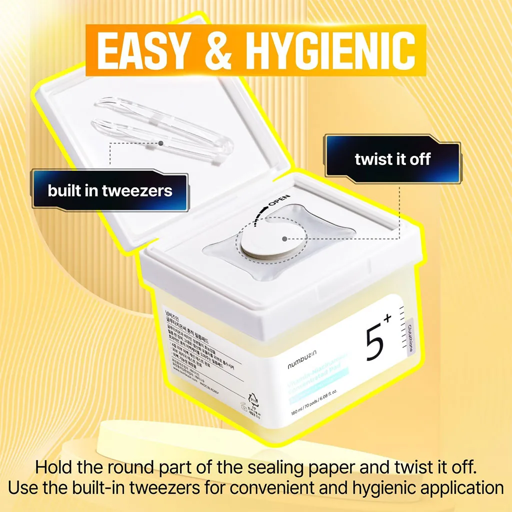 پد تونر Numbuzin No.5 Vitamin-Niacinamide Concentrated Toner Pads، پدی دوبخشی با یک سمت ژلی نرم (جلوه آبرسانی) و سمت دیگر گازِ نخی با قابلیت لایهبرداری ملایم است.