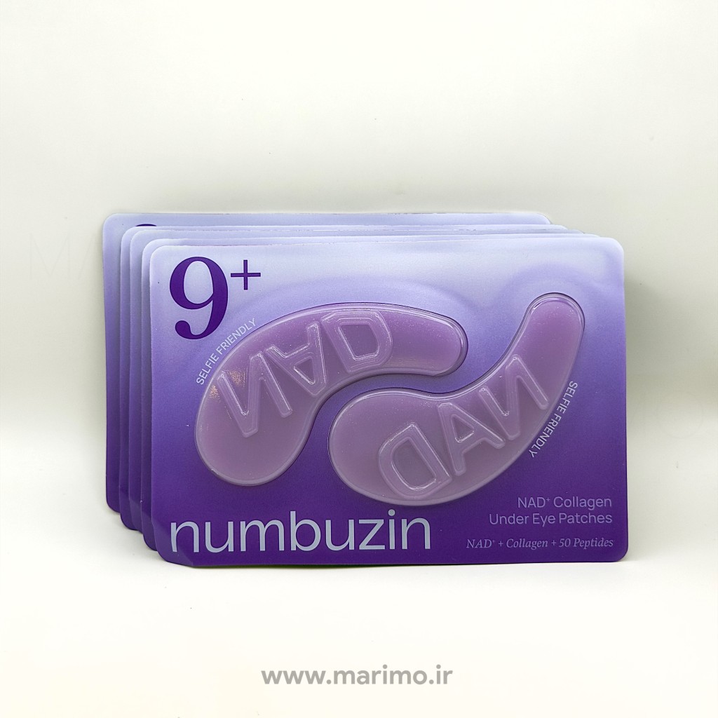 پچ زیر چشم Numbuzin No.9 جدا برای منطقه حساس زیر چشم طراحی شده است. این پچها از جنس هیدروژل ضدافتابی با کلاژن مولکول پایین (Fish Collagen)، NAD⁺ برای بازسازی سلولی، ۵۰ نوع پپتید مراقبتی، کافئین برای کاهش ورم و نیاسینامید برای روشنسازی رنگ پوست بهره میبرند.
