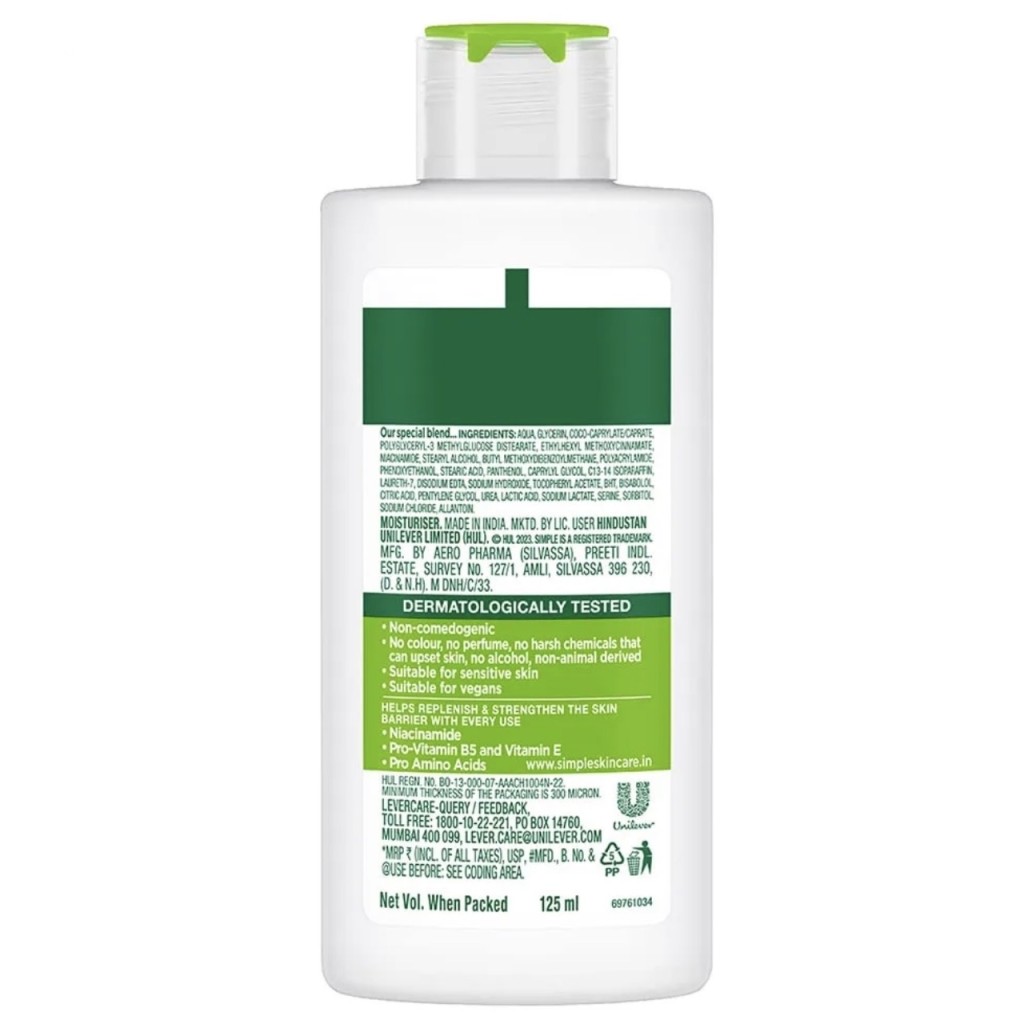 کرم آبرسان Simple Kind To Skin Hydrating Moisturiser با فرمولی ساده و ملایم طراحی شده است تا پوست را در برابر خشکی محافظت کند، بافت آن را نرم نماید و رطوبت را برای مدت طولانی حفظ کند. ترکیب این محصول شامل ویتامین E، پرو-ویتامین B5، روغن بُرِیج (Borage Seed Oil) و گلیسرین بوده و فاقد عطر، رنگ مصنوعی و مواد تحریک کننده است. بافت «لایت» آن برای استفاده روزانه بسیار مناسب است، مخصوصاً اگر پوست شما نیاز به مراقبت ملایم دارد یا ترجیح میدهید حس سنگینی روی پوست نداشته باشید.